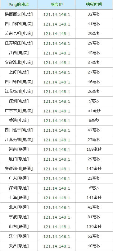 东莞电信东城IDC互联港湾 测试IP:119.147.102.1  121.14.148.1